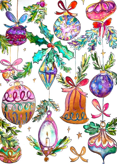 Leuke kerstkaart van Jill met aquarel kerstballen.