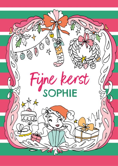 Leuke kerstkaart van Jill, met kleurplaat en aanpasbare naam.