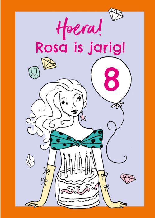 Illustratieve verjaardagskaart met kleurplaat en aanpasbare tekst van Jill.