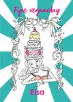 Illustratieve verjaardagskaart met kleurplaat en aanpasbare tekst van Jill.