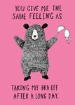 Grappige valentijnskaart met illustratie en de tekst: You give me the same feeling as taking my bra off after a long day.