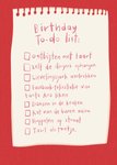 Originele checklist-kaart met kleine geluksmomenten. Een perfecte verjaardagskaart voor wie zijn dag eigen stijl wil geven.