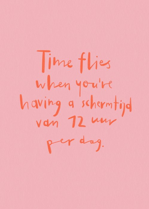 Een luchtige verjaardagskaart met herkenbare quote over schermtijd – ideaal voor iedereen die wel wat offline quality time kan gebruiken.