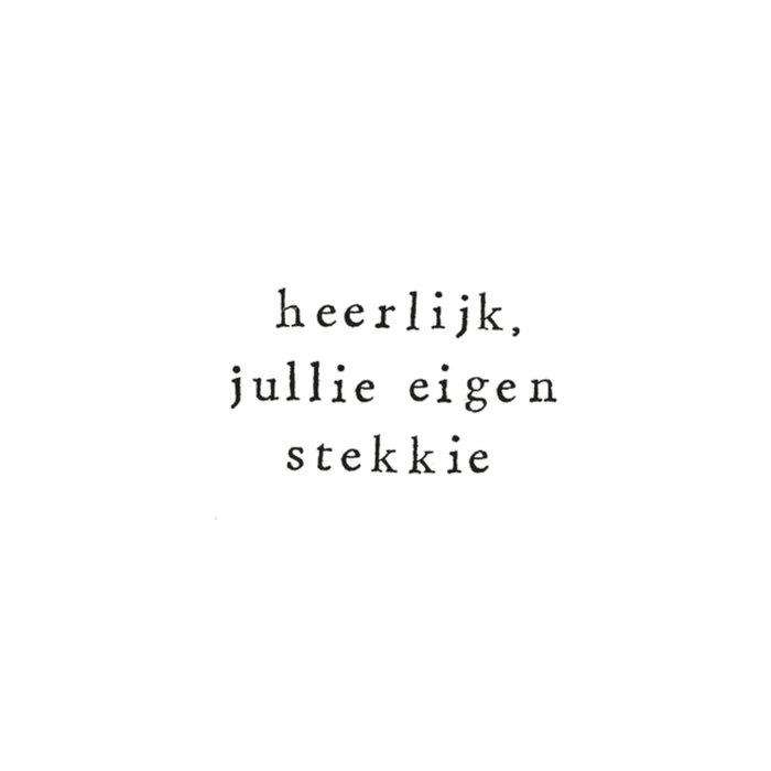 Feliciteer het verliefde stel met hun nieuwe huis ook wel eigen stekkie. Tekst op de kaart 'heerlijk, jullie eigen stekkie'.