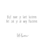 Op deze mooie quote kaart van Lief Leven staat: Blijf naar je hart luisteren. Het zal je de weg fluisteren.