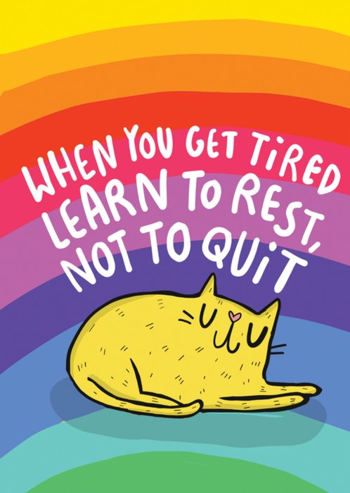 Leuke denken aan kaart met illustratie en de tekst: When you get tired learn to rest, not to quit