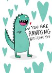 Katie Abey | Valentijnskaart | You Are Annoying But I Love You | Illustrated Dinosaur