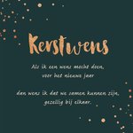 Schattige kerstkaart met een leuke kerstwens op de kaart: Als ik een wens mocht doen, voor het nieuwe jaar dan wens ik dat we samen kunnen zijn, gezellig bij elkaar.