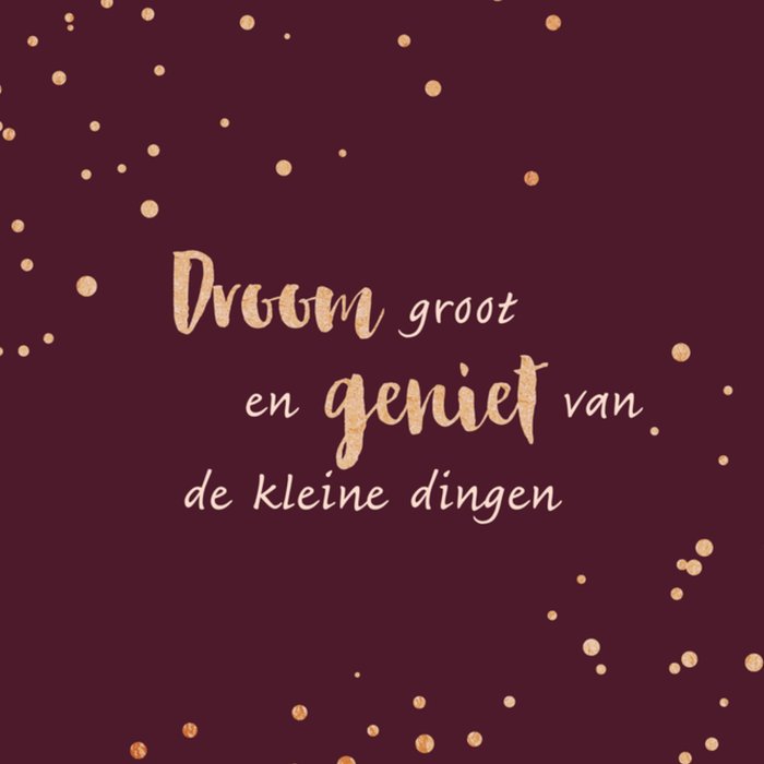 Super leuke kerstkaart met een lieve tekst: Droom groot en geniet van de kleine dingen.