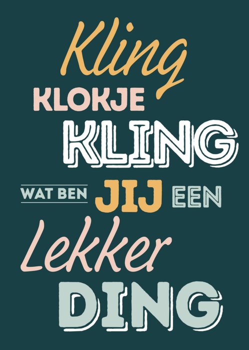 Op deze kerstkaart staat: Klink klokje kling wat ben jij een lekker ding.