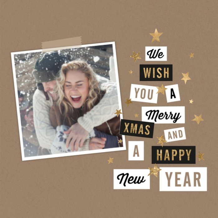 Op deze leuke kerstkaart om iemand een fijne kerst mee te wensen van Greetz erop staat de tekst: We wish you a merry xmas and a happy new year.