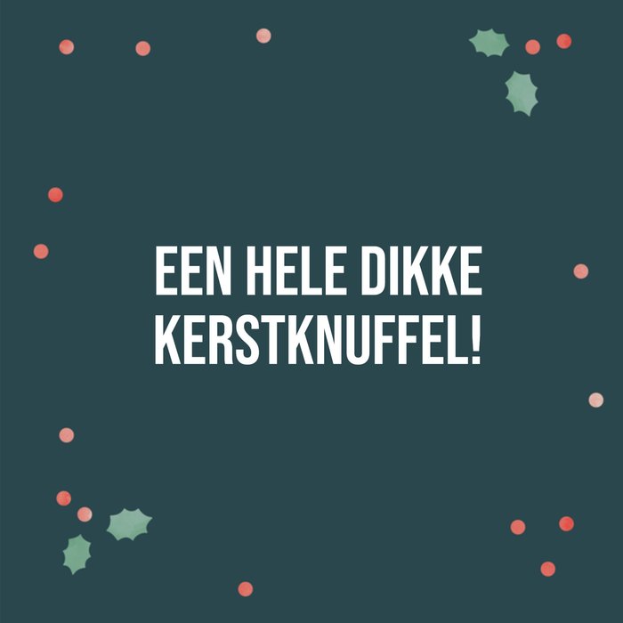 Leuke kerstkaart met allemaal sneeuwvlokjes en de tekst: Een hele dikke knuffel we denken aan jullie.