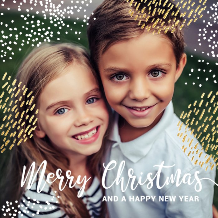 Op deze mooie kerstkaart van Luckz kun je een foto toevoegen. Ook staat er Merry Christmas and a happy new year.