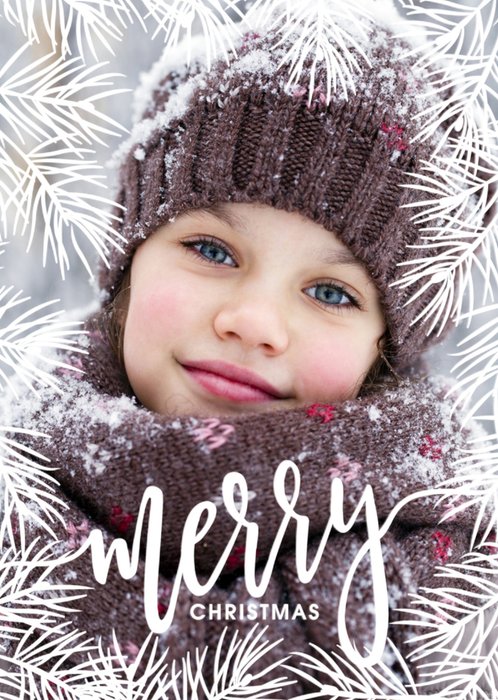 Wens vrienden en familie fijne feestdagen met een leuke fotokaart voor Kerst. Je voegt aan dit design één foto toe. Om de foto heen zit een kader met witte takjes.