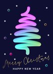 Wat een vrolijke boom! Op deze kerstkaart zie je een neon kerstboom en de tekst: Merry Christmas, Happy New Year.