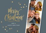 Wens vrienden en familie fijne feestdagen met een leuke fotokaart voor Kerst. Je voegt aan dit design dire foto's toe. Naast de foto's staat de tekst: Merry Christmas and a Happy New Year.