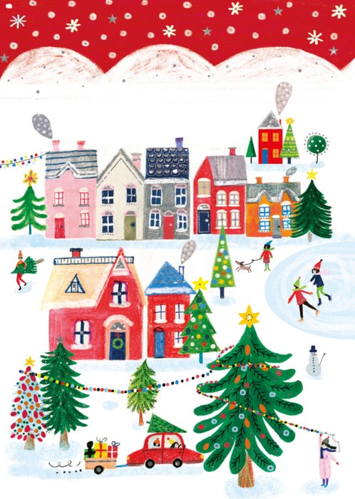 Het is weer tijd om iemand te verrasen met een super leuke kaart met de Kerst. De kaarten van TMS zijn daar perfect voor. Op deze kaart zie je een schattig dorpje in de sneeuw met kerstboompjes.