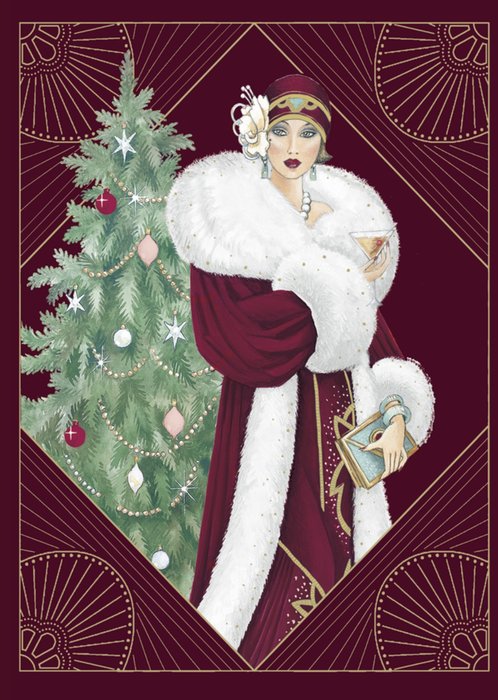Het is weer tijd voor de fijnste tijd van het jaar: Kerst. Wie ga jij dit jaar verrassen met een kerstkaart? Kies een van de leuke kerstkaarten van UK Greetings. Ze zijn klassiek en geven een warm gevoel! Op deze kaart zie je een klassieke gatsby gekleden vrouw met een kerstboom.