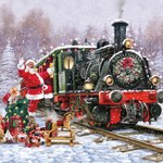 Een mooie klassieke kertkaart van UK Greetings. Op de kaart zie je de kerstman en een stoomtrein.