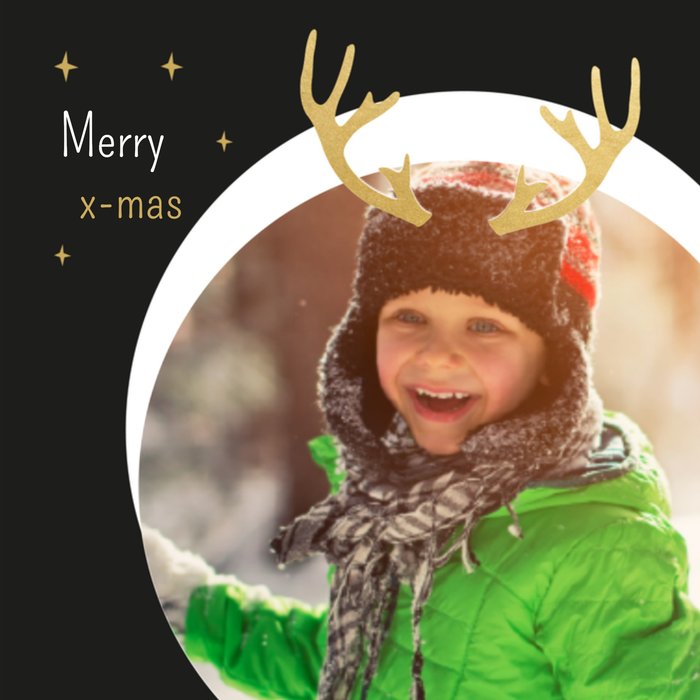 Een leuke kerstkaart waar je een foto aan kunt toevoegen en de tekst: Merry x-mas.