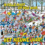 Een leuke nieuwjaarskaart sturen? Dan is deze zeker leuk. Op de kaart zie je allemaal taferelen van mensen op het gladde ijs. Ook zie je de tekst: In volle vaart op weg naar...het nieuwe jaar!