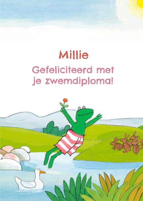 Verras iemand met deze leuke zwemdiploma kaart van Kikker.