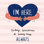 Lieve denken aan kaart om iemand mee te verrassen met de tekst: I'm here, today, tomorrow & every day, always.