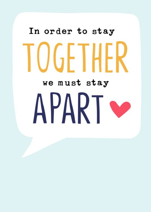 Lieve denken aan kaart om iemand mee te verrassen met de tekst: In order to stay together we must stay apart.