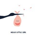 Een lief geboortekaartje om de kersverse ouders van het kleine meisje te feliciteren. Op de kaart houdt een ooievaar de baby op. De naam op de kaart is aanpasbaar. Toch liever een ander design? Bekijk