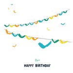 Vrolijke verjaardagskaart met vlaggetjes en naam.