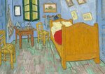 Op deze kunstkaart zie je het schilderij de slaapkamer van Vincent van Gogh. Op het schilderij zie je de indeling van een slaapkamer met onderandere een bed en schilderijen aan de muur.
