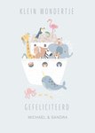 Feliciteer met de geboorte van een kindje met deze lieve geboortekaart van Klara Hawkins. Op de kaart staat een mooie illustratie en de tekst: Klein wondertje. Gefeliciteerd.