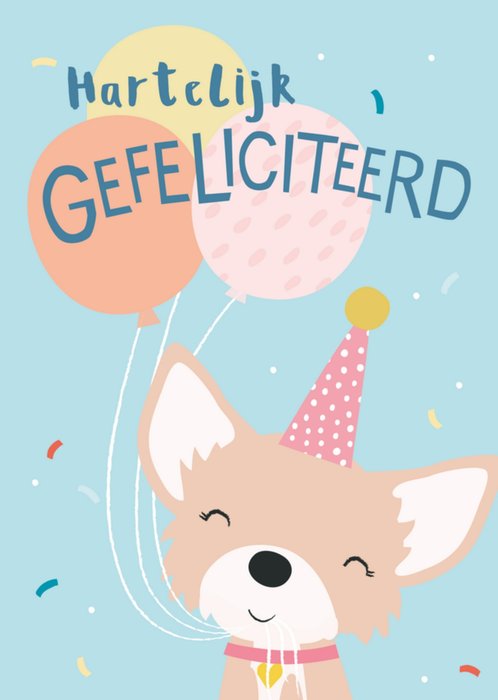 Lieve wenskaart met illustratie en de tekst: Hartelijk gefeliciteerd.
