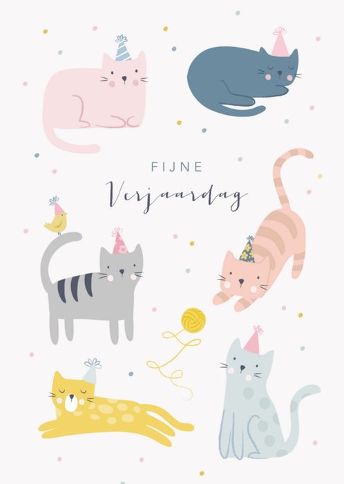 Grappige verjaardagskaart met katten en de tekst: Fijne verjaardag