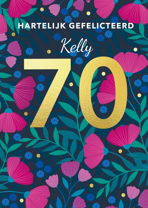 Leuke verjaardagskaart met leeftijd en aanpasbare naam.