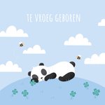 Dat is even schrikken! Een kindje dat te vroeg geboren is. Stuur deze lieve kaart van Kleine Twinkeltjes om de ouders een hart onder de riem te steken. Op de kaart zie je een schattige panda en de tekst: Te vroeg geboren.