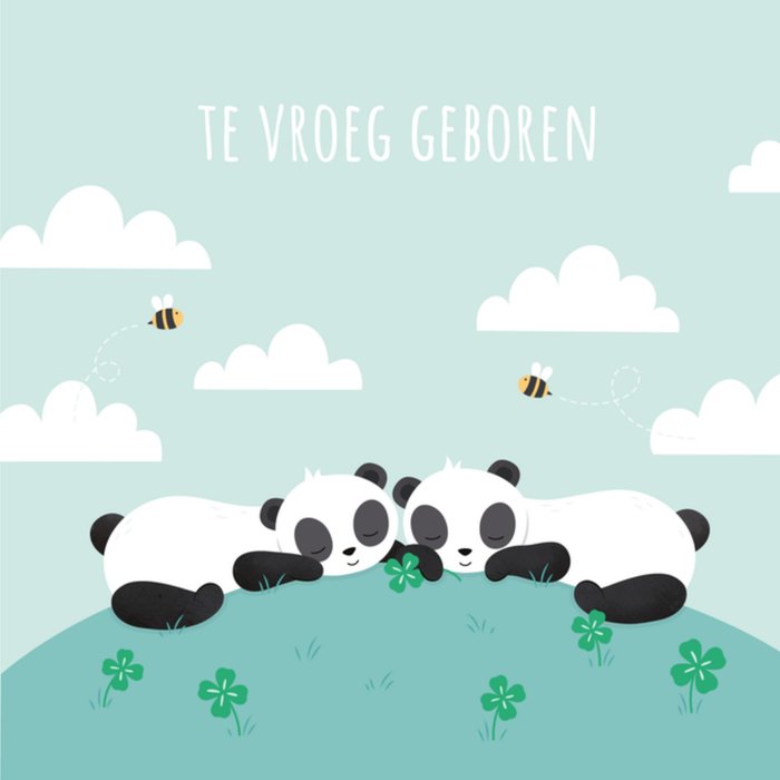 Dat is even schrikken! Een kindje dat te vroeg geboren is. Stuur deze lieve kaart van Kleine Twinkeltjes om de ouders een hart onder de riem te steken. Op de kaart zie je een schattige panda en de tekst: Te vroeg geboren.