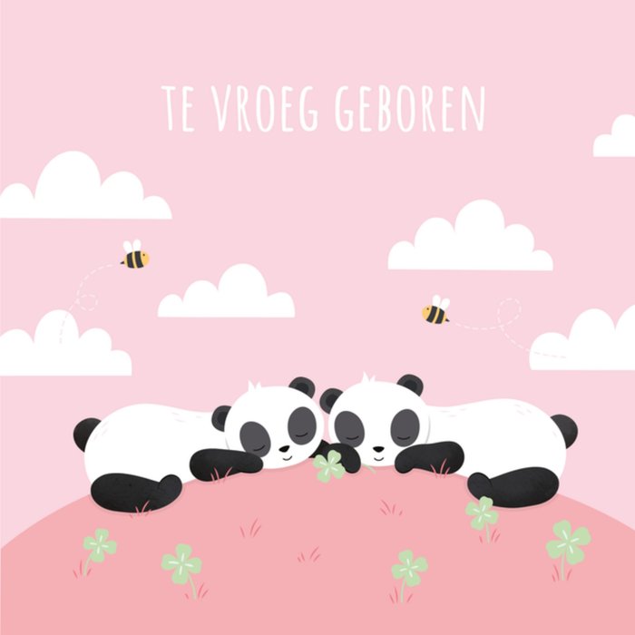 Dat is even schrikken! Een kindje dat te vroeg geboren is. Stuur deze lieve kaart van Kleine Twinkeltjes om de ouders een hart onder de riem te steken. Op de kaart zie je een schattige panda en de tekst: Te vroeg geboren.