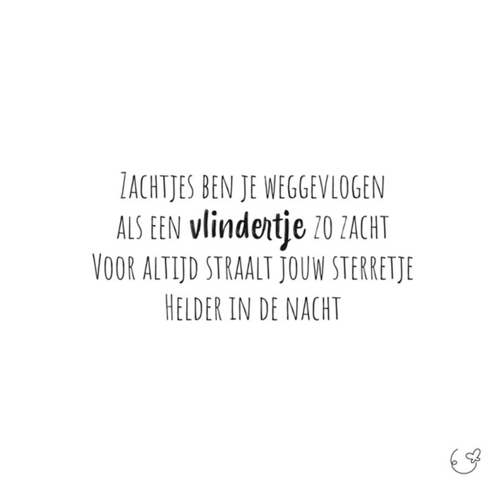 Lieve condoleancekaart van Kleine Vlindervoetjes met tekst.