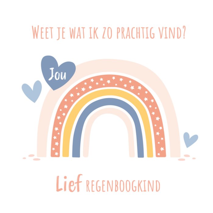 Ken jij iemand die tijdens een lastige periode een kindje heeft gekregen? Stuur ze dan een lief geboortekaartje met regenboog voor hun regenboogkindje. Op deze kaart staat: Weet je wat ik zo prachtig vind? Lief regenboogkind.