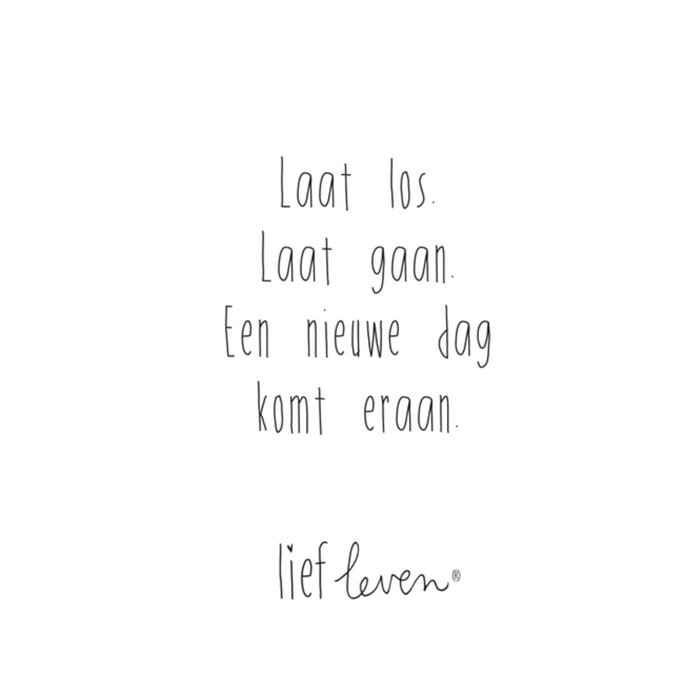 Op deze mooie quote kaart van Lief Leven staat: Laat los. Laat gaan. Een nieuwe dag komt eraan!
