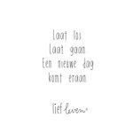 Op deze mooie quote kaart van Lief Leven staat: Laat los. Laat gaan. Een nieuwe dag komt eraan!