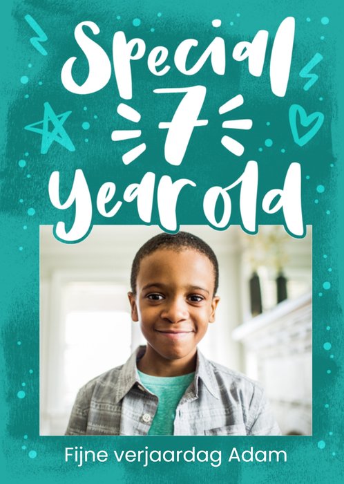 Leuke verjaardagskaart met foto en aanpasbare tekst.
