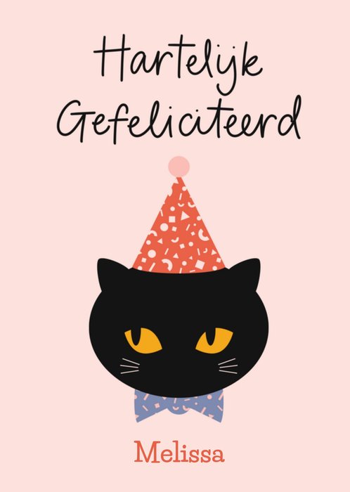 Leuke verjaardagskaart met de illustratie van een kat en aanpasbare naam.