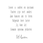 Lief Leven geeft een luchtig filosofische kijk op ons onbegrijpelijke en mooie leven. De teksten zijn positief, simpel en lief. ‘Want daar kan de wereld wel wat meer van gebruiken’ volgens de jonge schrijfster Nanne van der Leer