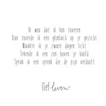 Op deze mooie quote kaart van Lief Leven staat: Ik wou dat ik kon toveren. Dan toverde ik een glimlach op je gezicht. Maakte ik je zware dagen licht. Tekende ik een zon boven je hoofd. Sprak ik een spreuk die de pijn verdooft.