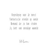 Minimalistische verjaardagskaart met de tekst: “Hieperdepiep voor de meest fantastische vriendin op aarde. Niemand die zo kan stralen. Jij bent van oneindige waarde. lief leven.” Verras je vriend met deze typografische verjaardagskaart van Lief Leven.