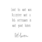 Op deze mooie quote kaart van Lief Leven staat de tekst: Laat los wat was. Accepteer wat is. Heb vertrouwen in wat gaat komen.