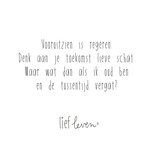 Op deze mooie quote kaart van Lief Leven staat: Vooruitzien is regeren. Denk aan je toekomst, lieve schat. Maar wat dan als ik oud ben en de tussentijd vergat?