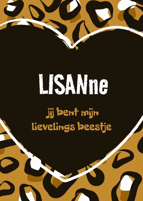 Wie is jouw lievelingsbeestje? Dit design heeft een lekker tijgerprintje en de naam is aanpasbaar.